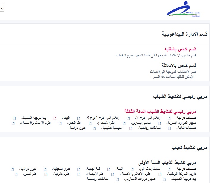 المنصة الرقمية البيداغوجية - INFSCJ Tixeraine